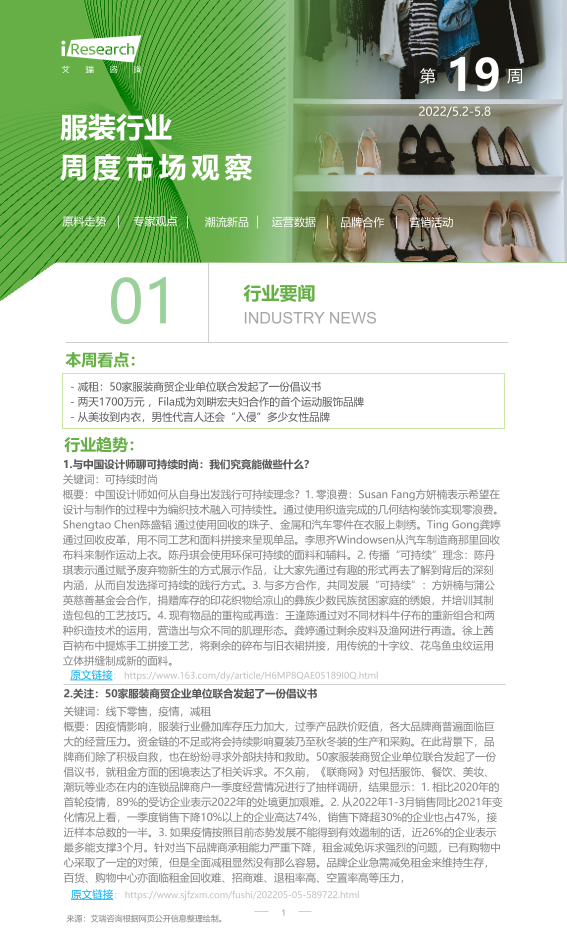 【艾瑞咨询】【20220508】2022年第19周:服装行业周度市场观察-8页
