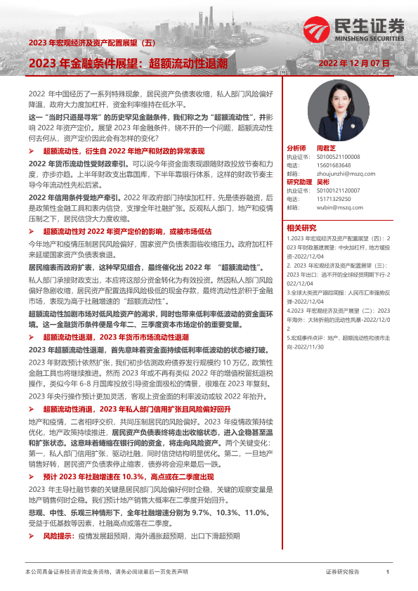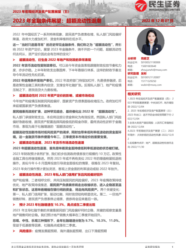 【民生证券】【20221207】2023年宏观经济及资产配置展望(五):2023年金融条件展望,超额流动性退潮-20页