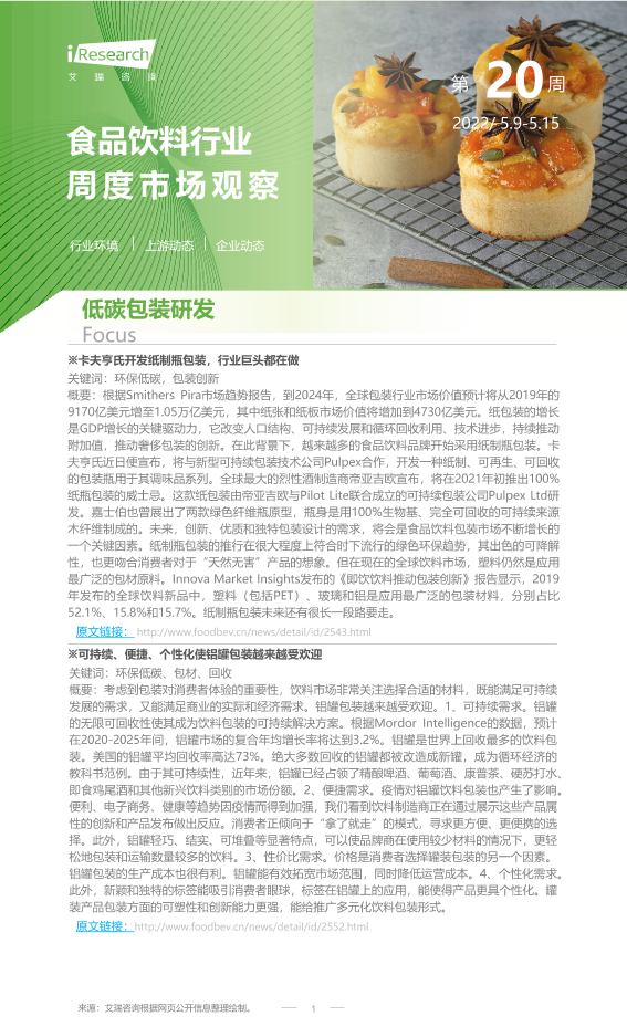 【艾瑞咨询】【20220515】2022年第20周:食品饮料行业周度市场观察-9页