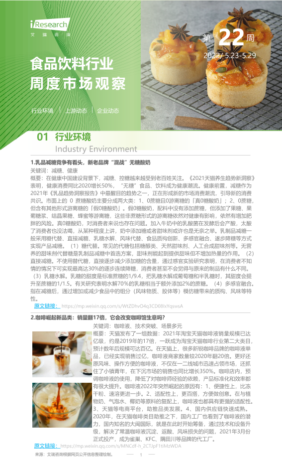 【艾瑞咨询】【20220529】2022年第22周:食品饮料行业周度市场观察-7页