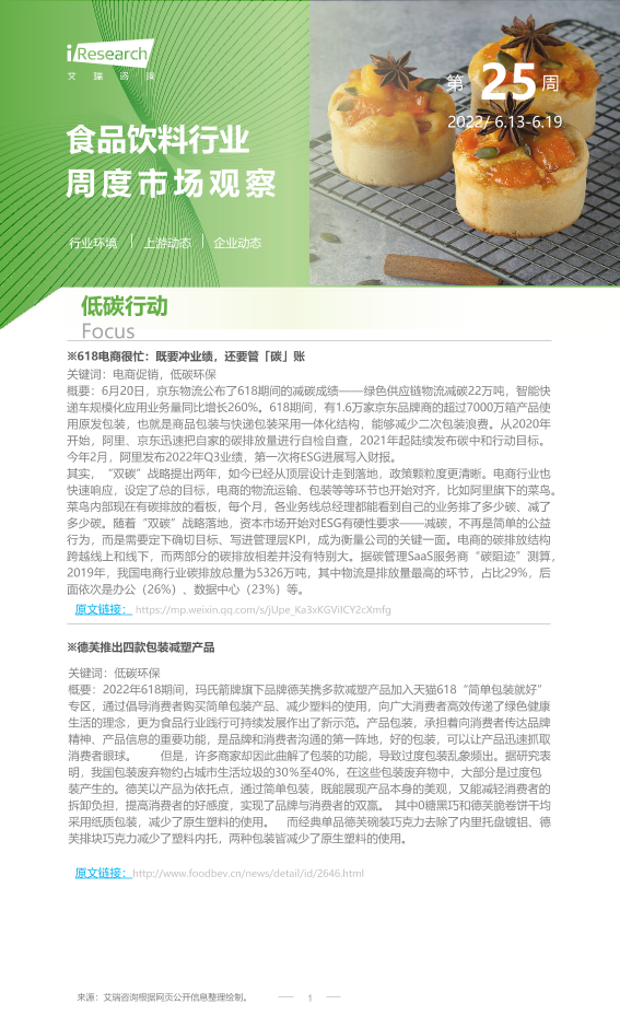 【艾瑞咨询】【20220619】2022年第25周:食品饮料行业周度市场观察-10页