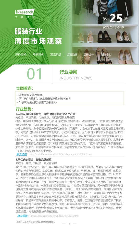 【艾瑞咨询】【20220619】2022年第25周:服装行业周度市场观察-9页