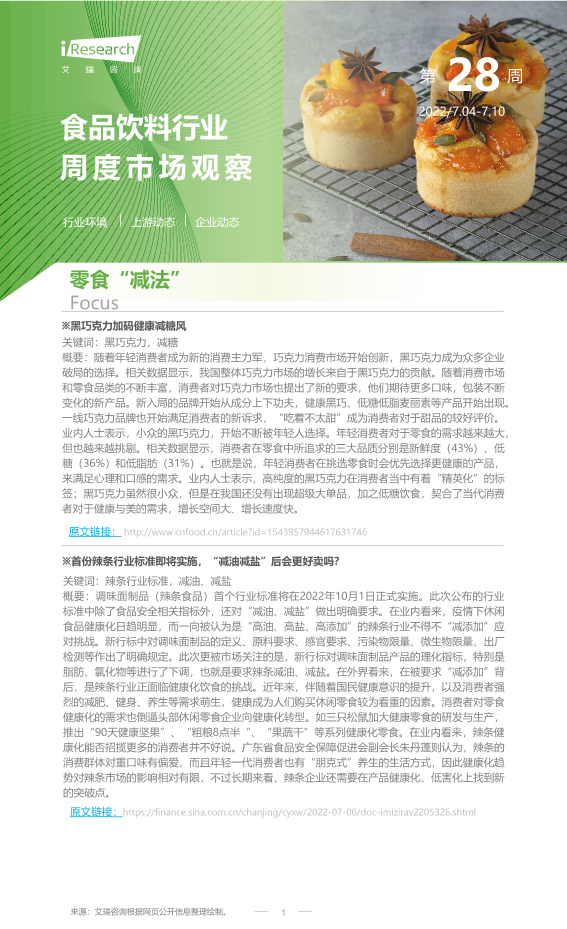 【艾瑞咨询】【20220710】2022年第28周:食品饮料行业周度市场观察-9页