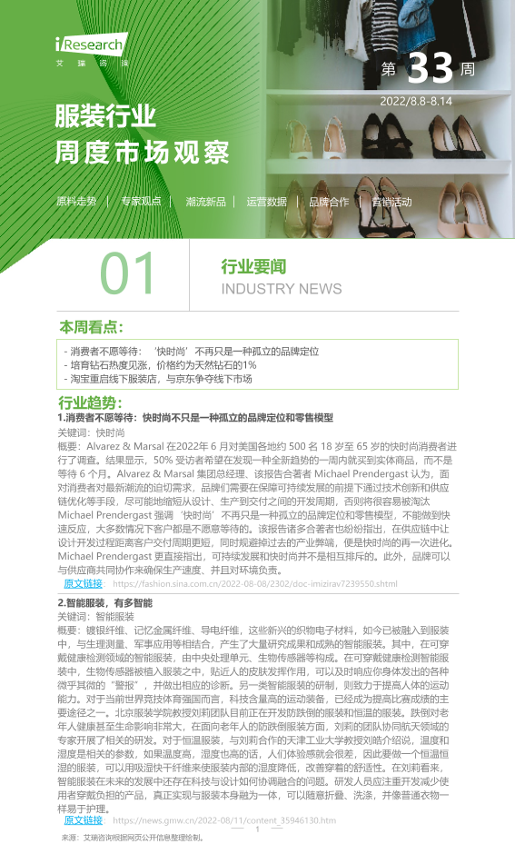 【艾瑞咨询】【202208】2022年第33周:服装行业周度市场观察-8页