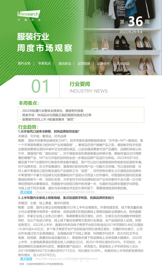 【艾瑞咨询】【20220904】2022年第36周:服装行业周度市场观察-8页
