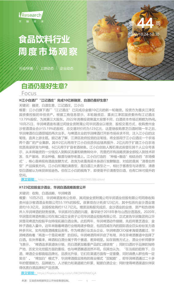 【艾瑞咨询】【202210】2022年第44周:食品饮料行业周度市场观察-8页
