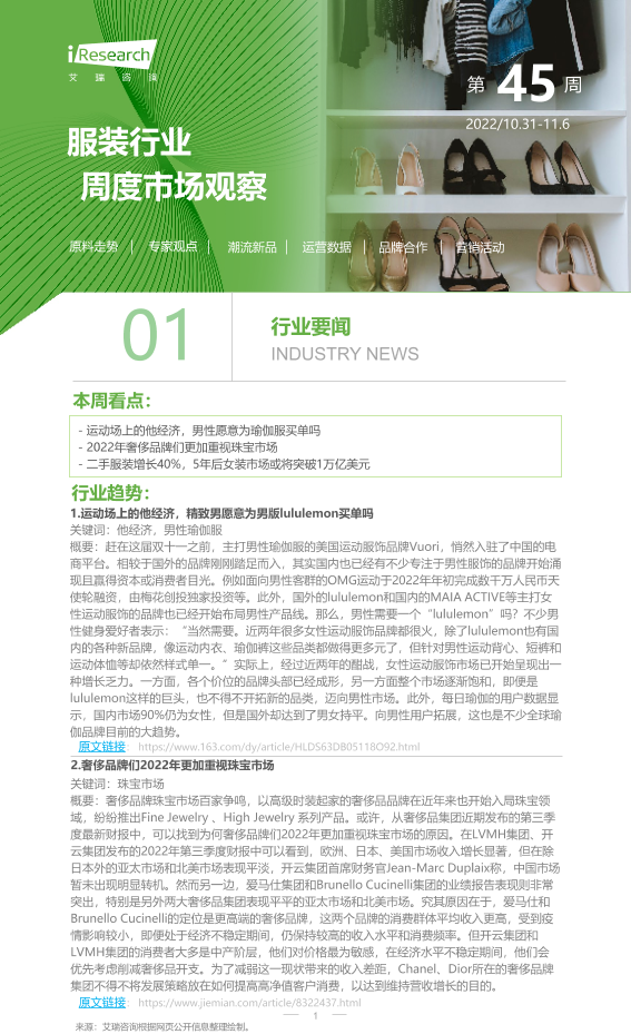 【艾瑞咨询】【20221106】2022年第45周:服装行业周度市场观察-7页