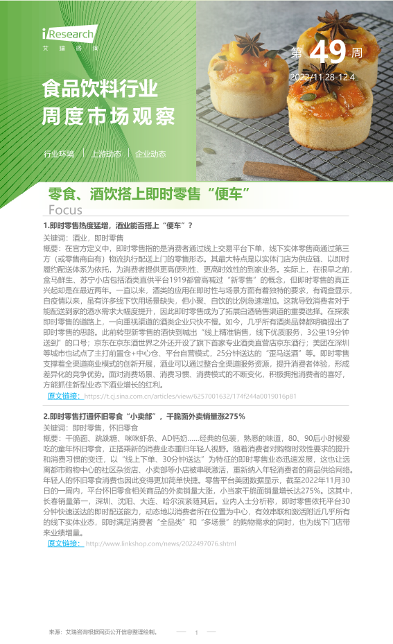 【艾瑞咨询】【20221204】2022年第49周:食品饮料行业周度市场观察-7页