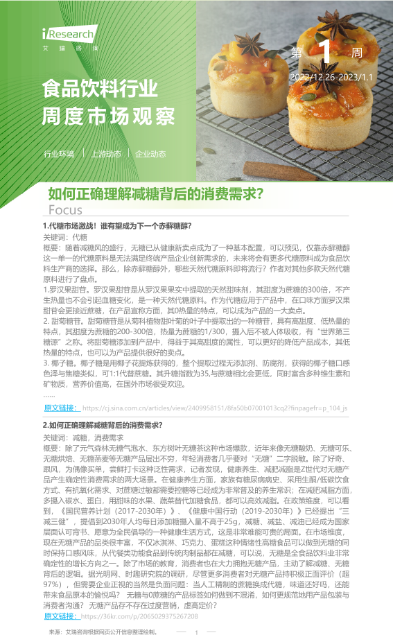【艾瑞咨询】【202301】2023年第1周:食品饮料行业周度市场观察-7页