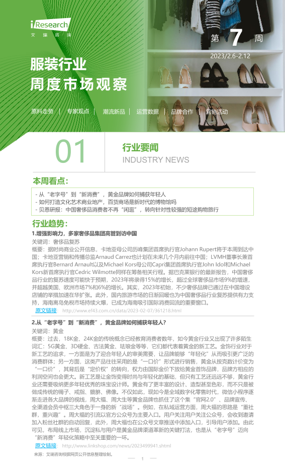 【艾瑞咨询】【20230212】2023年第7周:服装行业周度市场观察-7页