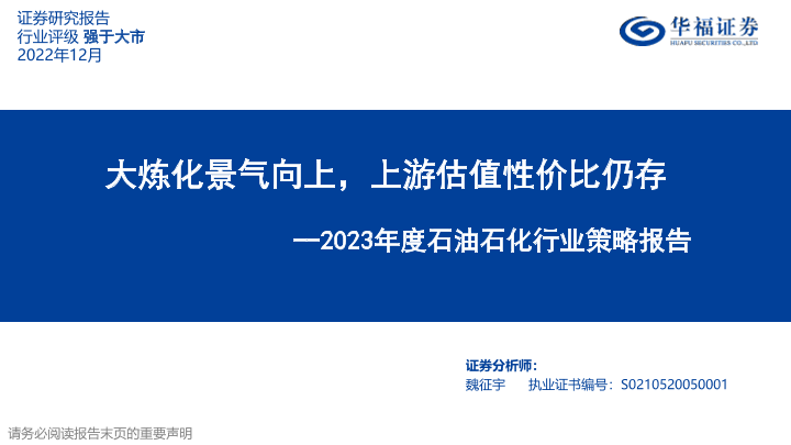 【华福证券】【20221201】2023年度石油石化行业策略报告:大炼化景气向上,上游估值性价比仍存-22页