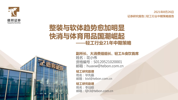 【德邦证券】【20210826】轻工行业21年中期策略:整装与软体趋势愈加明显,快消与体育用品国潮崛起-39页
