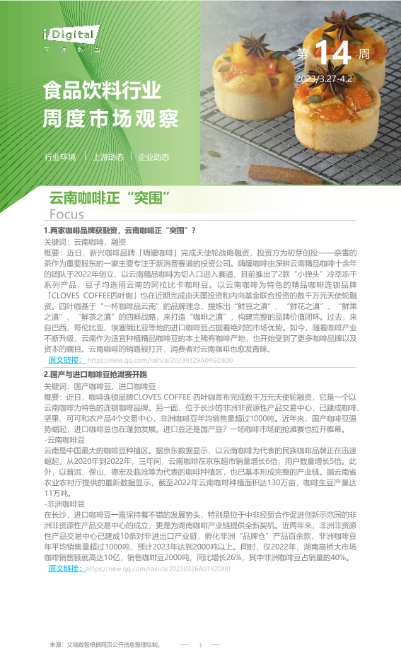 【艾瑞咨询】【20230402】2023年第14周:食品饮料行业周度市场观察-8页