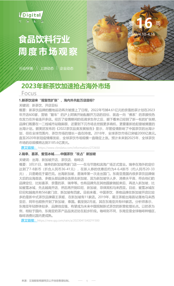 【艾瑞咨询】【20230414】2023年第16周:食品饮料行业周度市场观察-7页