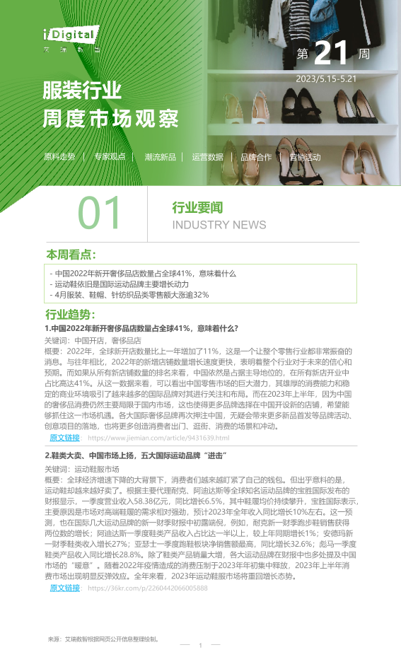 【艾瑞咨询】【20230521】2023年第21周:服装行业周度市场观察-6页