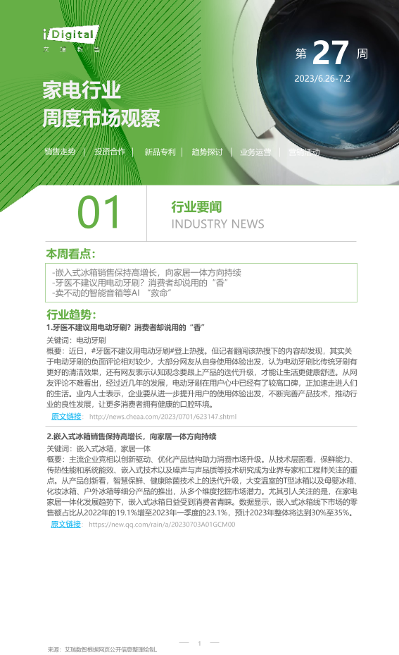 【艾瑞咨询】【20230702】2023年第27周:家电行业周度市场观察-7页