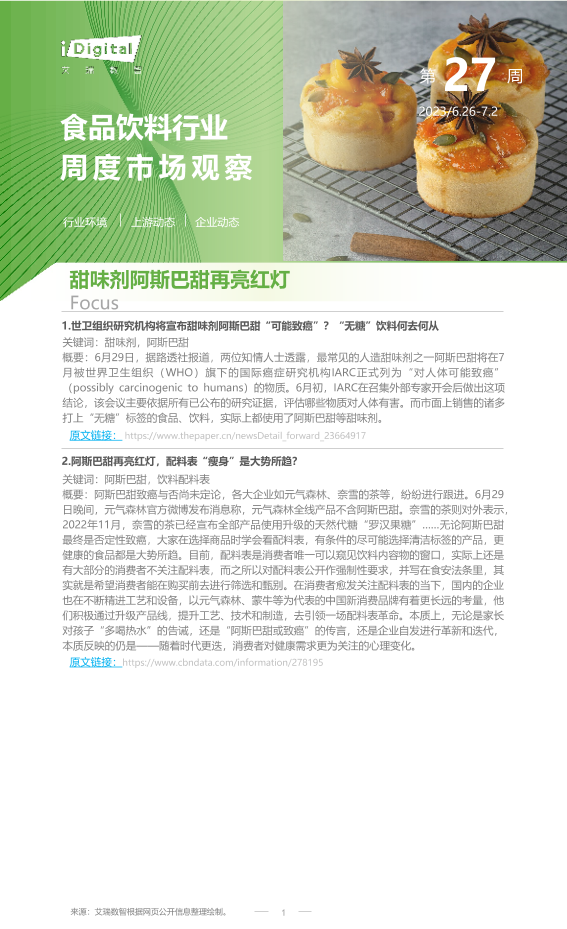 【艾瑞咨询】【20230702】2023年第27周:食品饮料行业周度市场观察-7页
