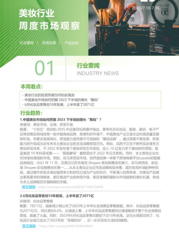 【艾瑞咨询】【20230716】2023年第29周:美妆行业周度市场观察-6页