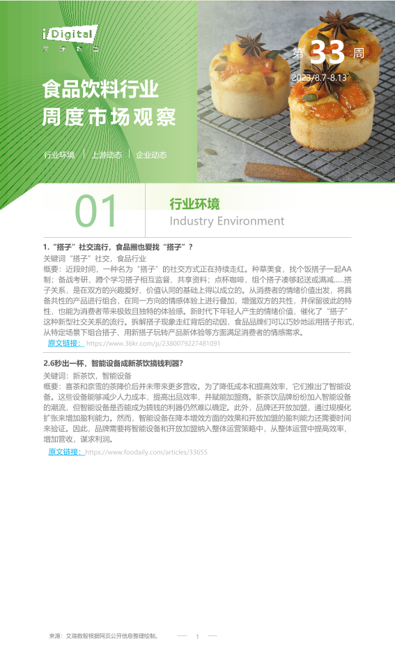 【艾瑞咨询】【20230813】2023年第33周:食品饮料行业周度市场观察-6页