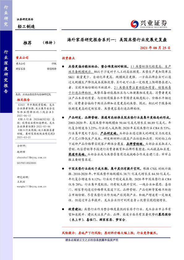 【兴业证券】【20210825】海外家居研究报告系列一:美国床垫行业发展史复盘-32页