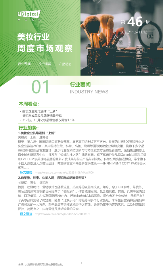 【艾瑞咨询】【20231112】2023年第46周:美妆行业周度市场观察-6页