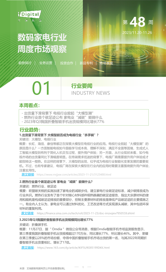 【艾瑞咨询】【20231126】2023年第48周:数码家电行业周度市场观察-4页