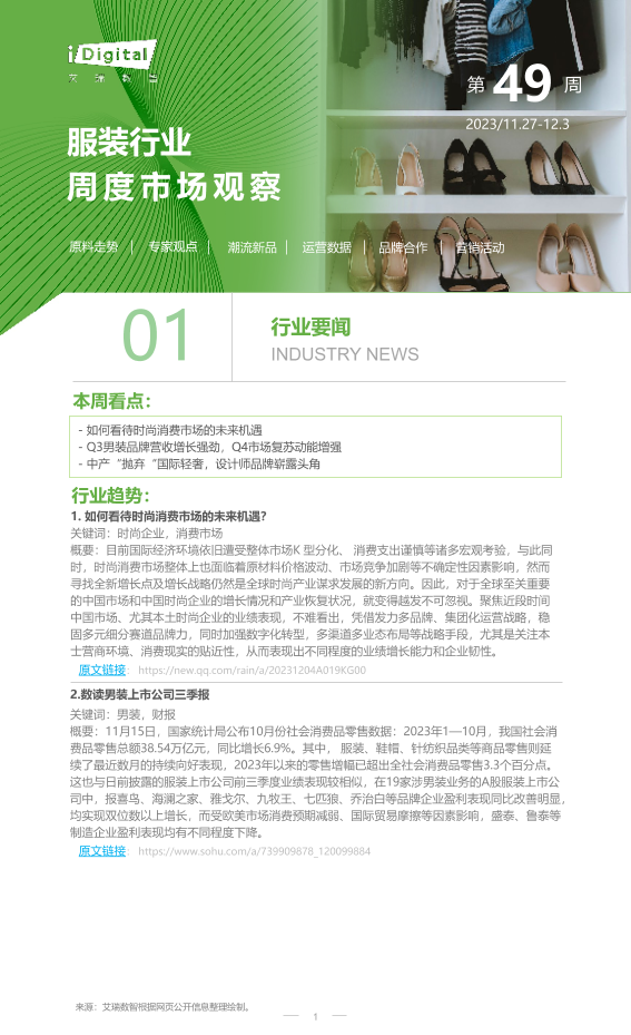 【艾瑞咨询】【20231203】2023年第49周:服装行业周度市场观察-6页