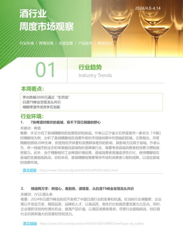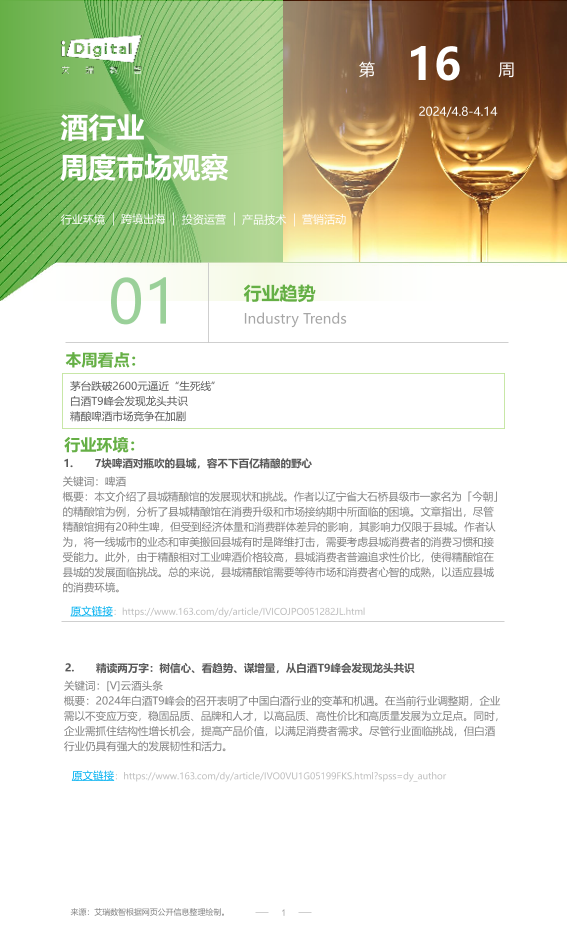 【艾瑞咨询】【20240414】2024年第16周-酒行业周度市场观察-10页