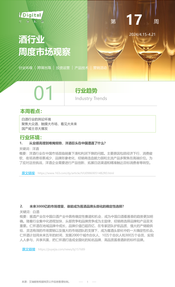 【艾瑞咨询】【20240421】2024年第17周-酒行业周度市场观察-10页