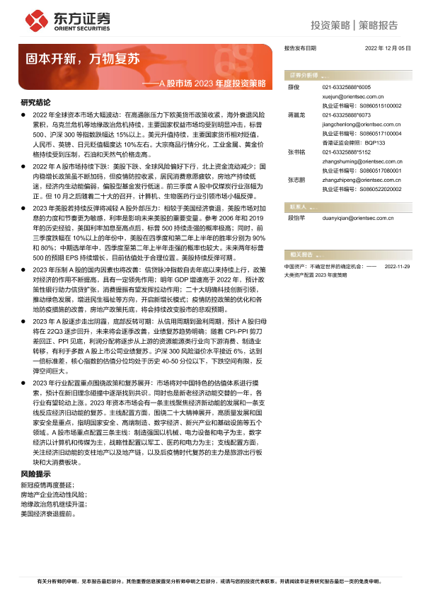 【东方证券】【20221205】A股市场2023年度投资策略:固本开新,万物复苏-36页