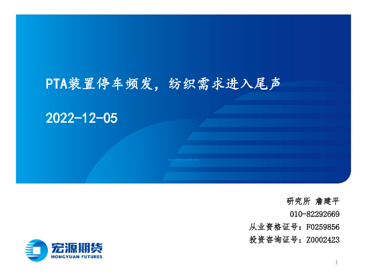 【宏源期货】【20221205】PTA装置停车频发,纺织需求进入尾声-27页