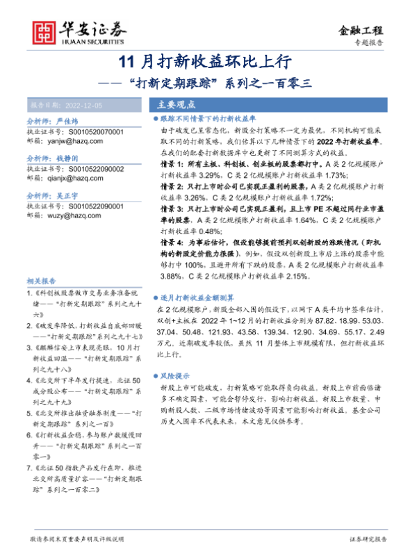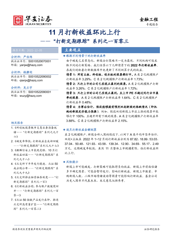 【华安证券】【20221205】“打新定期跟踪”系列之一百零三:11月打新收益环比上行-22页