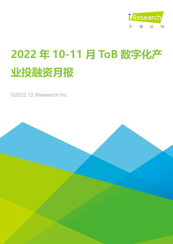 【艾瑞咨询】【202212】2022年10-11月ToB数字化产业投融资月报-18页