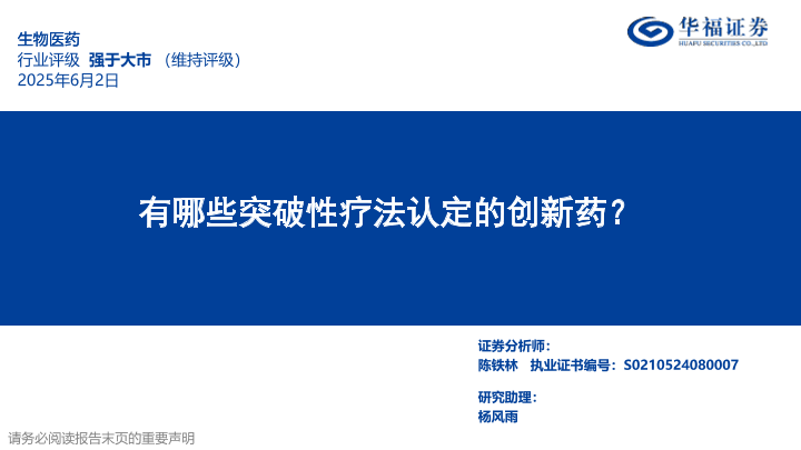 【华福证券】【20250602】生物医药行业定期:有哪些突破性疗法认定的创新药?-30页