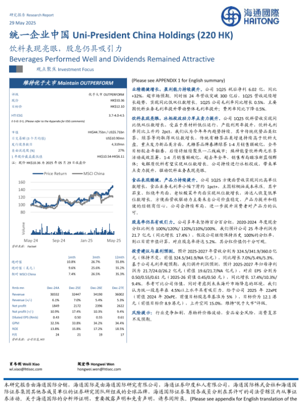 【海通国际】【20250529】统一企业中国饮料表现亮眼,股息仍具吸引力-12页