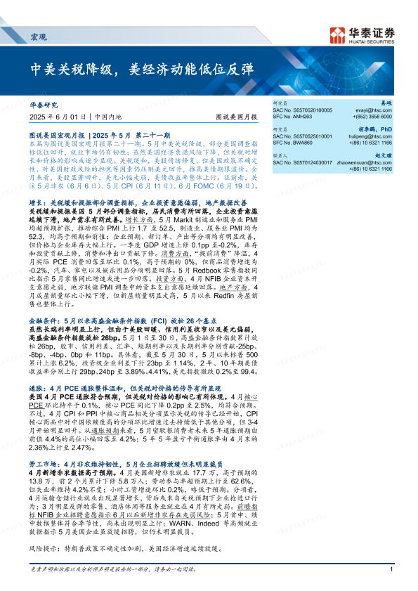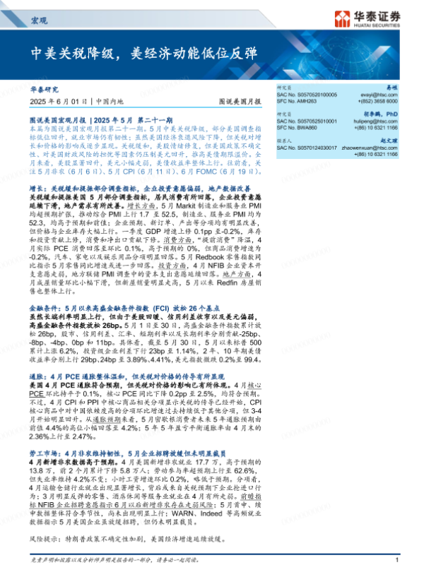 【华泰证券】【20250601】图说美国月报:中美关税降级,美经济动能低位反弹-17页
