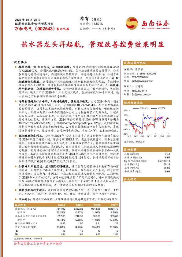 【西南证券】【20250528】万和电气(002543)热水器龙头再起航,管理改善控费效果明显-19页