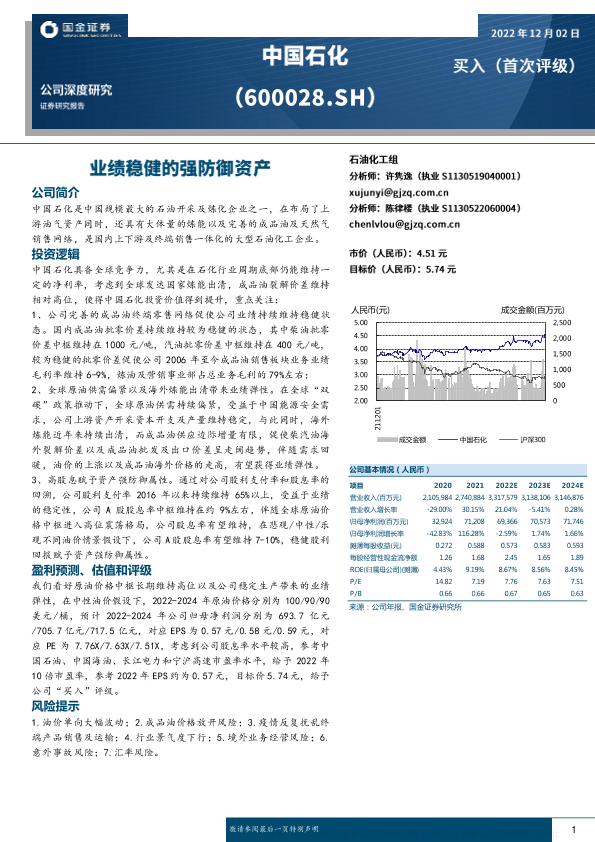 【国金证券】【20221202】中国石化:业绩稳健的强防御资产-37页