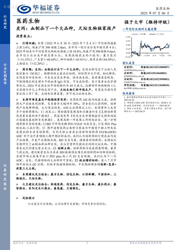 【华福证券】【20250706】皮丙:血制品下一个大品种,天坛生物独家报产-14页