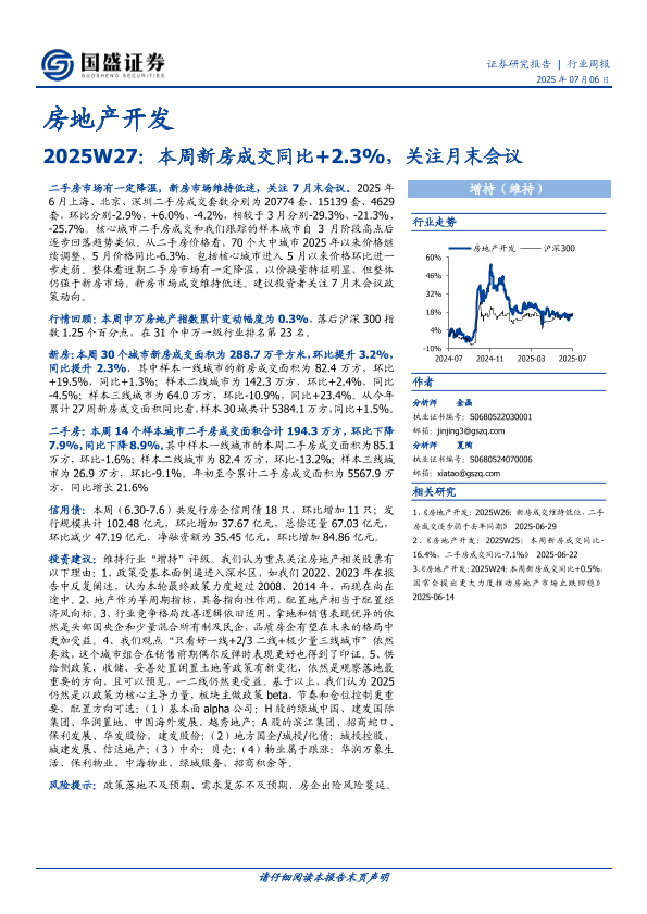 【国盛证券】【20250706】2025W27:本周新房成交同比+2.3%,关注月末会议-13页