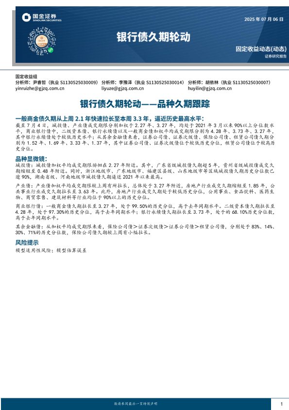 【国金证券】【20250706】品种久期跟踪_银行债久期轮动-7页