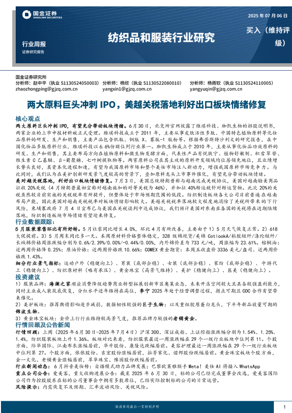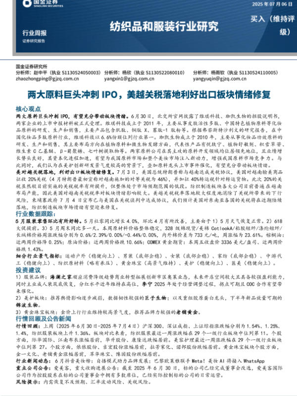 【国金证券】【20250706】纺织品和服装行业周报-12页