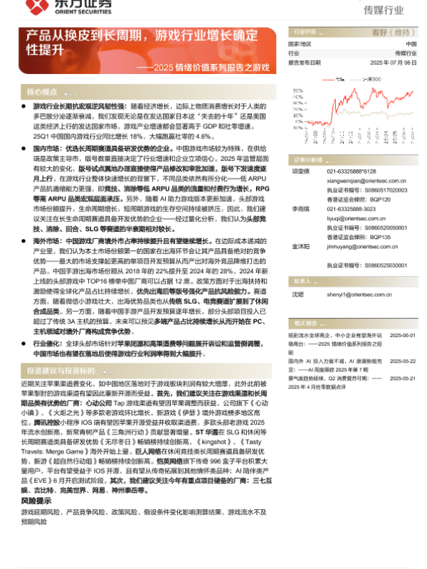 【东方证券】【20250706】产品从换皮到长周期,游戏行业增长确定性提升-25页