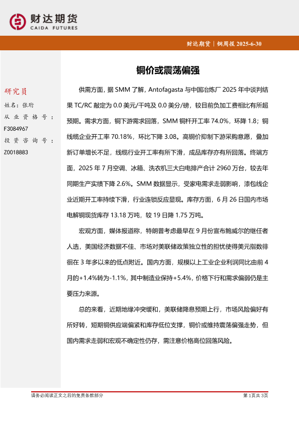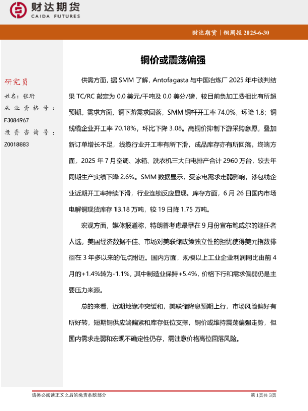 【财达期货】【20250630】铜周报_铜价或震荡偏强-3页
