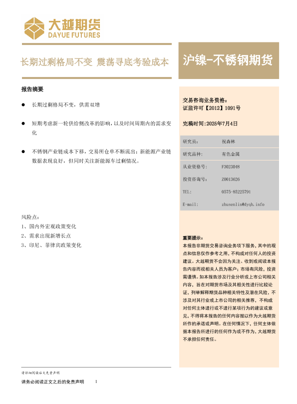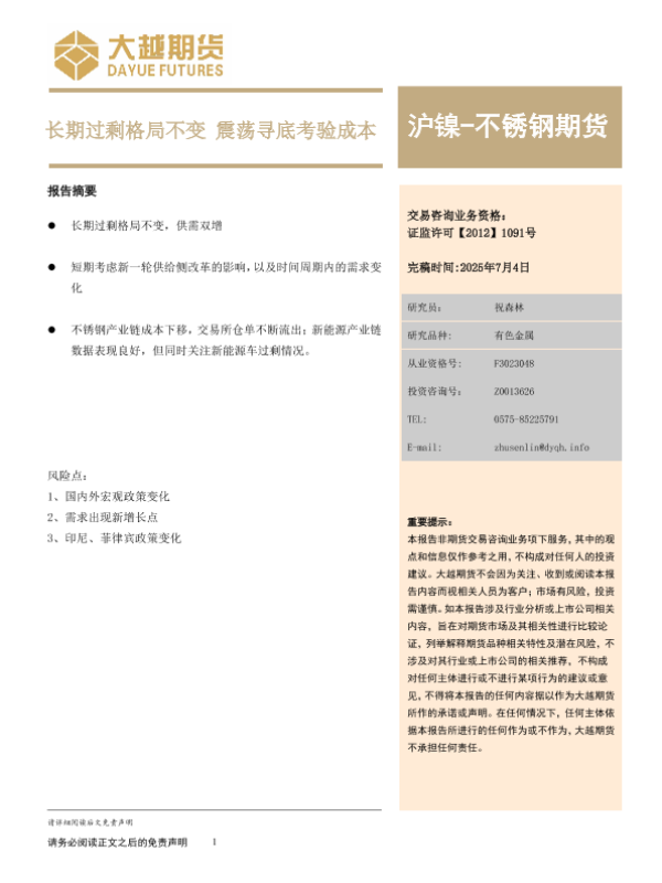 【大越期货】【20250704】沪镍-不锈钢期货年度报告_长期过剩格局不变_震荡寻底考验成本-12页