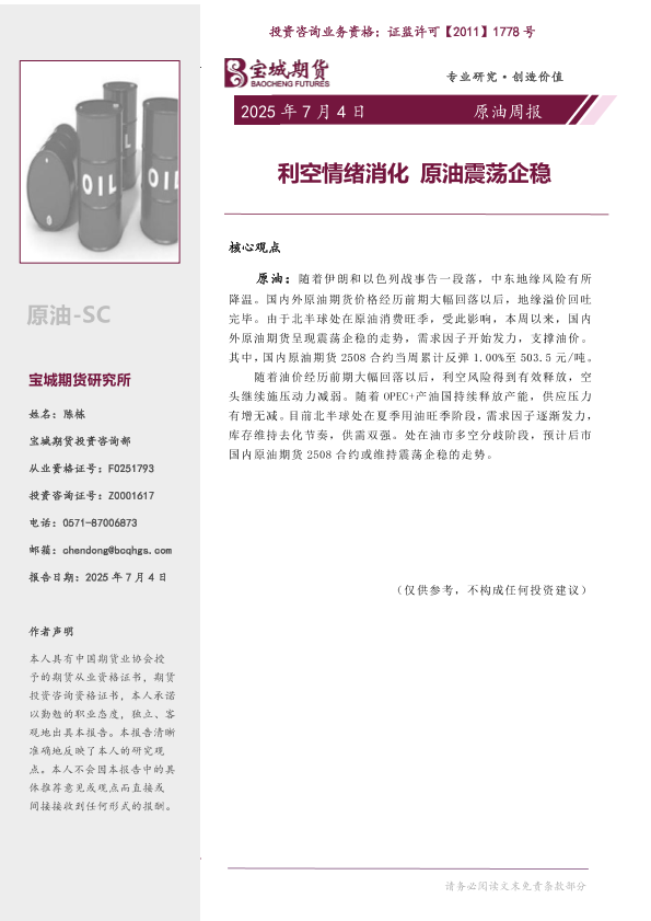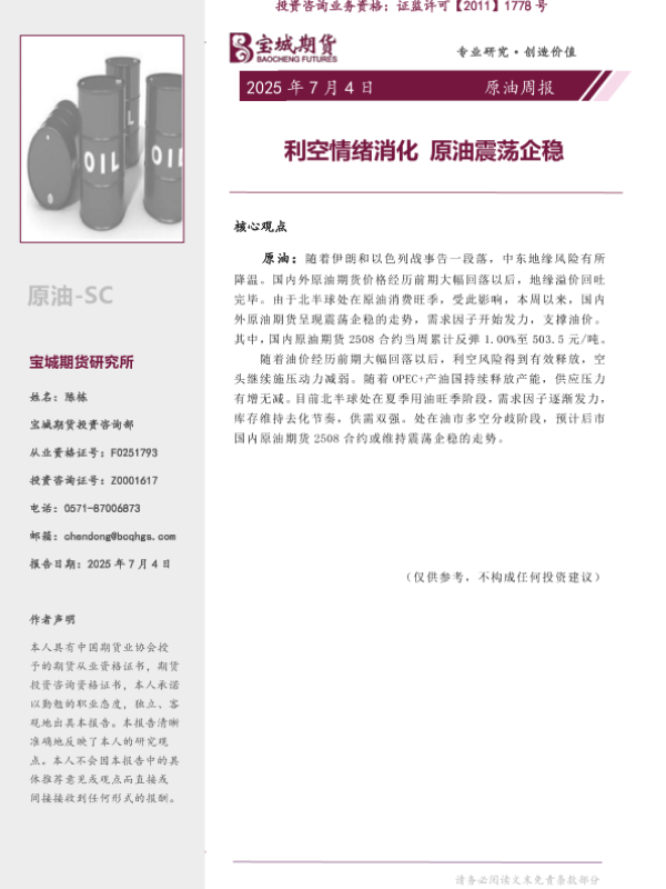 【宝城期货】【20250704】原油周报_利空情绪消化_原油震荡企稳-16页
