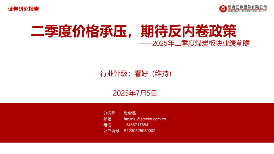 【浙商证券】【20250705】2025年二季度煤炭板块业绩前瞻_二季度价格承压_期待反内卷政策-29页