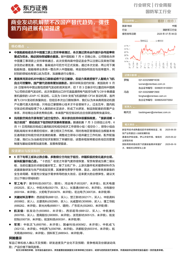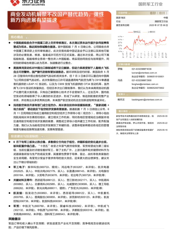 【东方证券】【20250706】国防军工行业_商业发动机解禁不改国产替代趋势_弹性新方向进展有望提速-13页