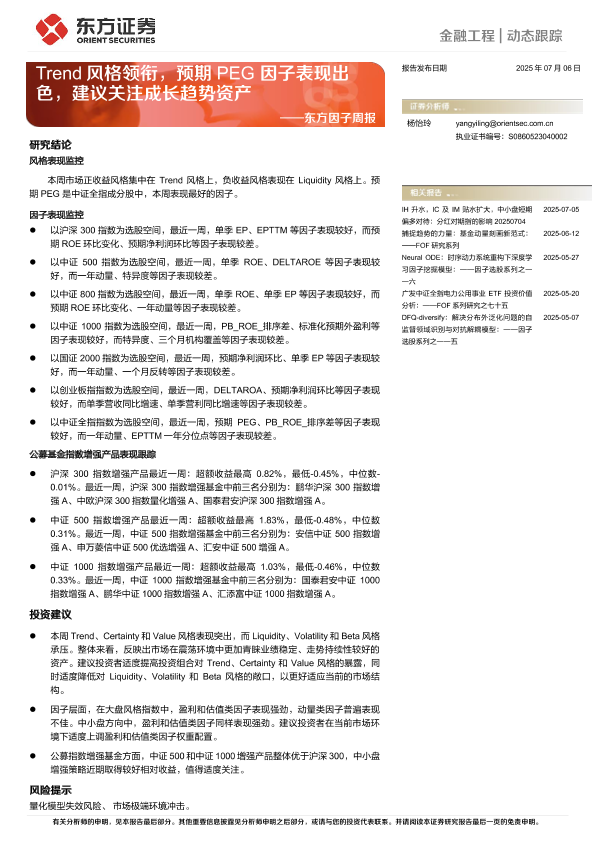 【东方证券】【20250706】Trend风格领衔,预期PEG因子表现出色,建议关注成长趋势资产-19页