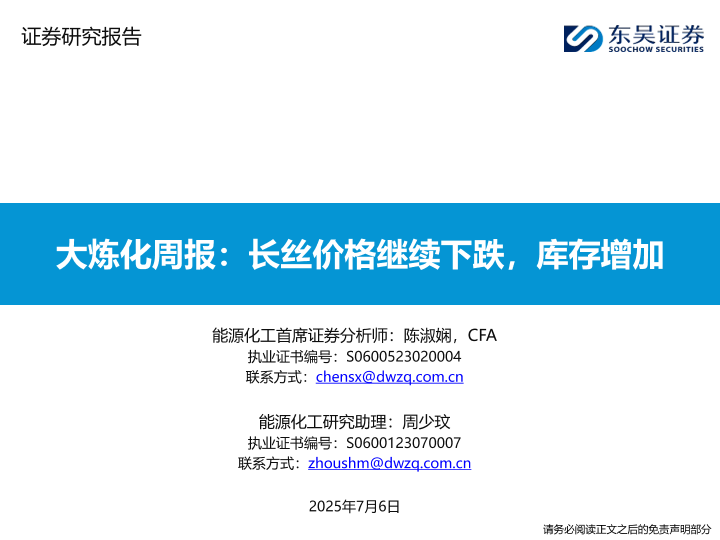 【东吴证券】【20250706】大炼化周报:长丝价格继续下跌,库存增加-34页